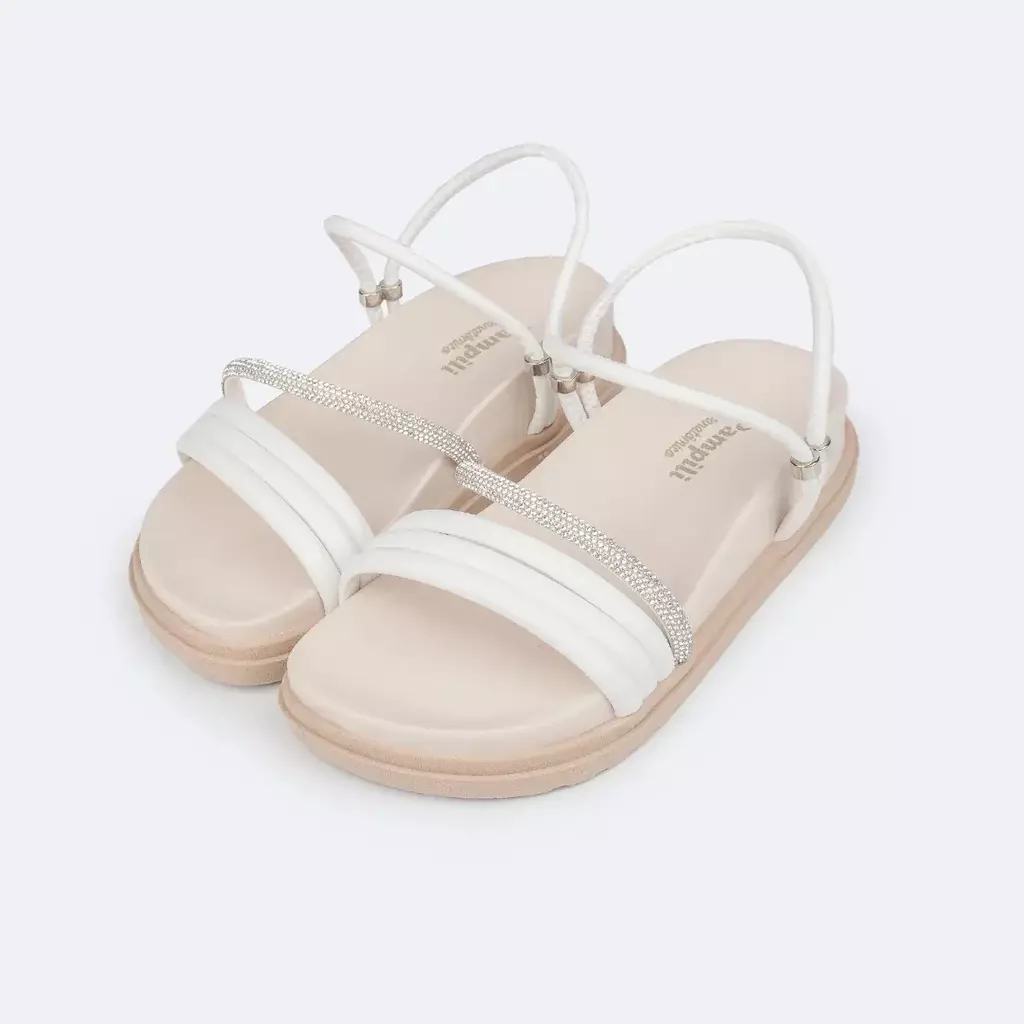 A Sandália Papete Infantil Pampili Olivia 2 em 1 Strass Branca é perfeita para as pequenas que amam conforto com um toque de brilho!