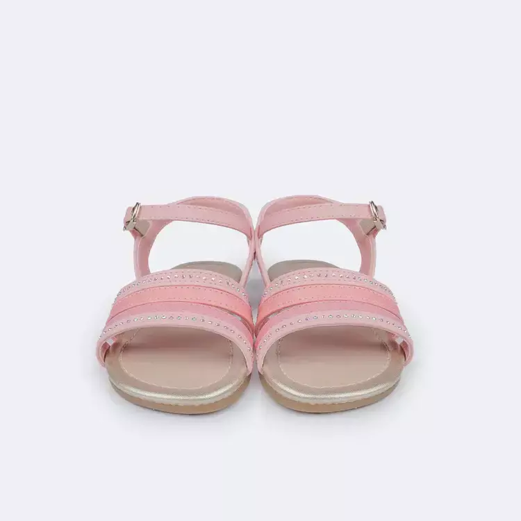 Sandália infantil feminina em sintético rosa, com parte frontal em tiras fixas uma a outra, sendo duas delas em glitter com aplicação de strass em hotfix, dando brilho e estilo aos primeiros passinhos! Palmilha com espuma para mais conforto ao caminhar. A sandália de bebê tem solado emborrachado flexível e antiderrapante, proporcionando maior segurança e aderência ao chão. Sandália infantil fácil de calçar com fivela easy, sem pino no fechamento, uma tecnologia desenvolvida pela nossa equipe para trazer praticidade para a mamãe.